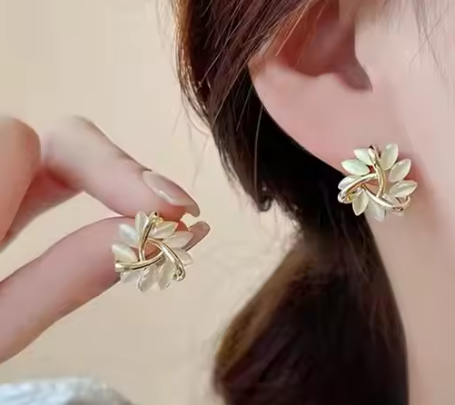 Beautiful 18K Gold Plated Crystal Flower Stud Earring