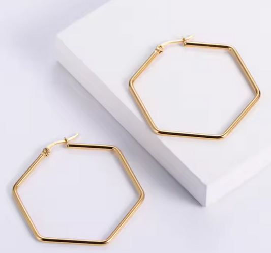 18k Gold Plated Stainless Steel Geometric Hexagon Shape Hoop Earrings
