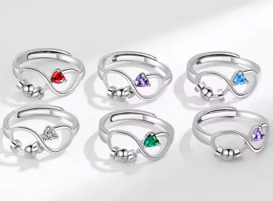 925 Sterling Silver 12 Zircon Birthstone Rings Personality Rotating Infinity Engagement Wedding Anti-Anxiety